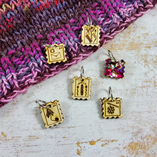 View full detailsAn all new design for 2026! Six adorable stitch markers in the form of knitting-themed postage stamps. Five are wood and one is a shiny multi-color...