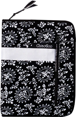 The ChiaoGoo interchangeable needle case is an elegant black and white case with a white ribbon. The case opens like a book and zips closed around ...